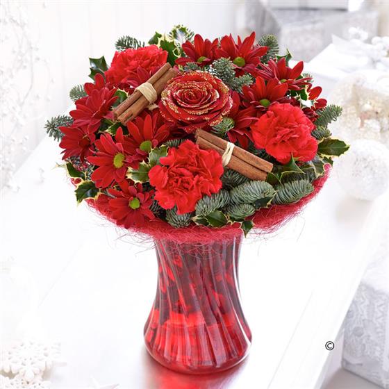 This Christmas Vase Arrangement will make sure Christmas is on the Way with Cinnamon Sticks giving the smell of Christmas